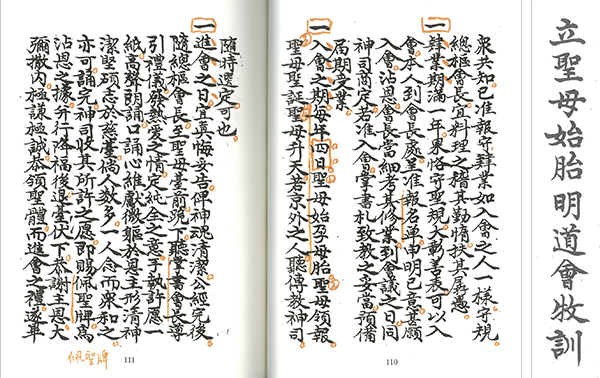 중국의 명도회규는 오늘날 대만 보인대학(輔仁大學) 서회신학원(徐匯神學院)에 소장된 「입성모시태명도회목훈(立聖母始胎明道會牧訓)」이 저본이다.