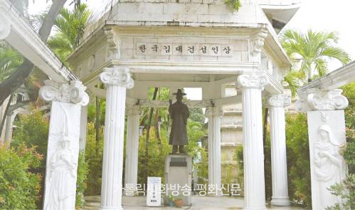 | ▲ 성 김대건 신부와 가경자 최양업 신부가 신학생 시절 머물렀던 필리핀 롤롬보이의 성 김대건 신부 성지. 성지 입구에 세워져 있는 김대건 신부 성상. 가톨릭평화신문 DB |